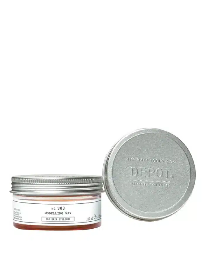 Vosak za modeliranje NO.303 iz DEPOT-a fleksibilan je proizvod za oblikovanje dizajniran da ponudi upravljivost i prirodan završetak. Sadrži kokosovo ulje koje djeluje kao omekšivač za stvaranje fleksibilnog filma na kosi, pružajući učinak oblikovanja i prirodni fiksator. Vosak također uključuje botanički kompleks od 12 biljnih ekstrakata koji blagotvorno djeluju na vlakna kose, ekstrakt lista crnog čaja zbog svojih humektanata i antioksidativnih svojstava, suncokretovo ulje bogato mineralima, vitaminima i masnim kiselinama te glicerin za održavanje vlažnosti kose. Ovaj proizvod je prikladan za postizanje snažne, fleksibilne i dugotrajne čvrstoće, a može se reaktivirati vodom tijekom dana za ponovno oblikovanje.