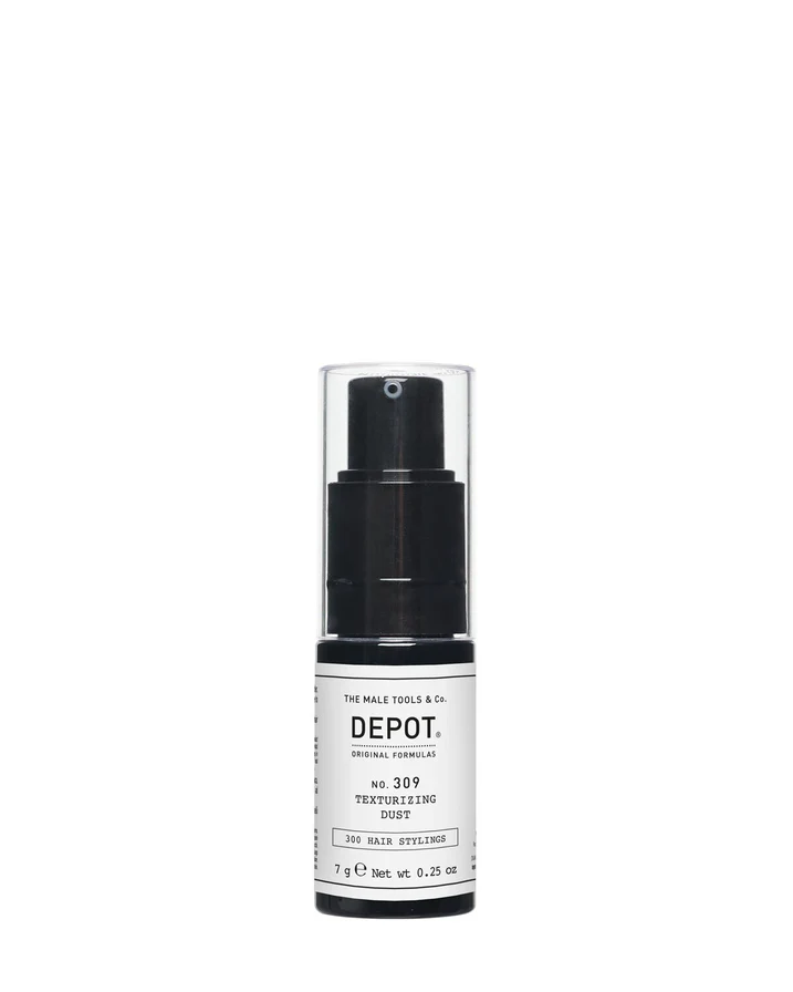 Texturizing Dust tvrtke DEPOT je proizvod za oblikovanje dizajniran za meko učvršćivanje s mat završnim slojem, dodajući volumen i strukturu svakoj frizuri. Osobito učinkovita za tanku ili tanku kosu, ovaj prah za teksturiranje formulirana je s prirodnim silicijevim dioksidom u obliku mikroniziranog praha, koji pridonosi mat izgledu i poboljšava strukturu kose. Ovo rezultira teksturiranim izgledom s povećanim volumenom, bez otežavanja kose. To je idealno rješenje za kreiranje teksturiranih frizura koje zahtijevaju povećanje volumena i prirodan završetak bez sjaja.