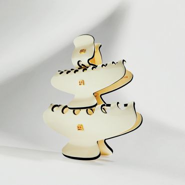 Velika   , ručno izrađena   kopča u obliku kandži od izdržljivog celuloznog acetata, dizajnirana s Balmainovim prepoznatljivim 18-karatnim pozlaćenim “B” logotipom. Iznimno jak, ali fleksibilan materijal je hipoalergen i nježan za kosu i vlasište. Kombinacija bijelog tijela s crnim rubom stvara upečatljiv kontrast, koji može dodati dašak elegancije i sofisticiranosti raznim frizurama. Velika kopča posebno je dizajnirana za gustu i dugu kosu i može se koristiti za savijanje kose u razne ležerne frizure.